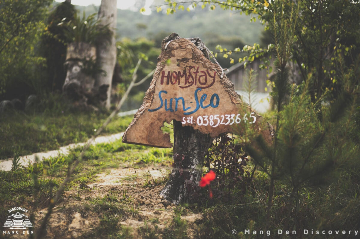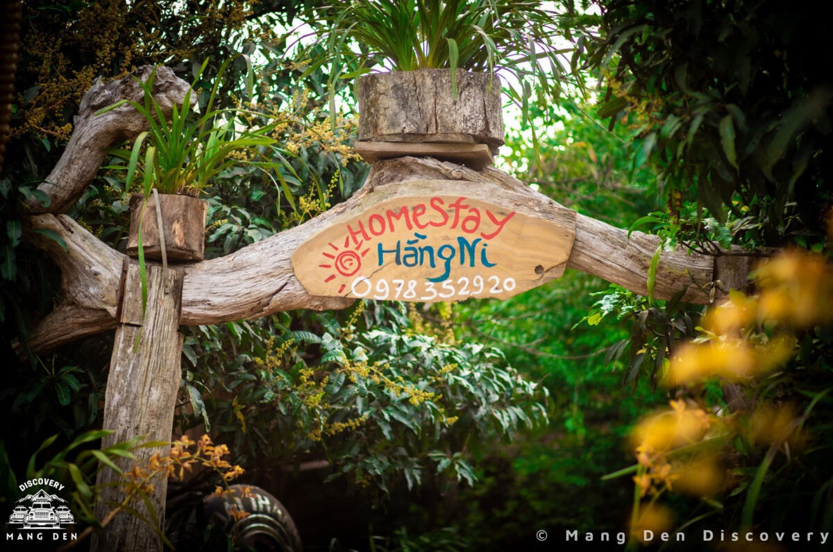 Khi bước vào cổng làng, du khách sẽ thấy những homestay mọc san sát. Biển hiệu mỗi căn homestay được trang trí bằng thân gỗ mục trông rất đơn sơ, mộc mạc nhưng vẫn bắt mắt.