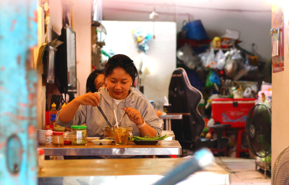 Quán núp xập xệ, tum húm trên đường Trần Quốc Thảo, Sài Gòn. Bà chủ nói quán mở mười mấy năm rồi. Mặt bằng chỉ xếp được mấy bàn, bảng hiệu còn không có.