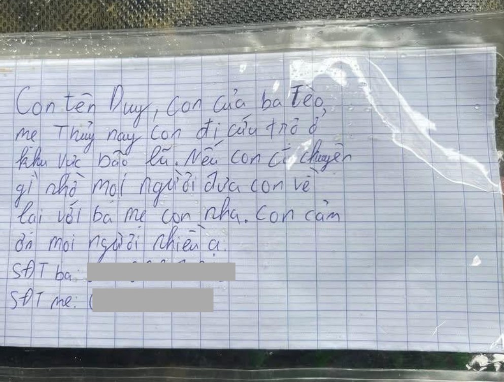 Có câu chuyện rất xúc động của anh Hoàng Bảo Duy, một thanh niên tình nguyện cứu trợ vùng lũ. Trước khi vào khu vực ngập nặng, anh Duy viết trên tờ giấy đeo trong người thông tin ba mẹ kèm số điện thoại, “nếu con có chuyện gì, nhờ mọi người đưa con về lại với ba mẹ”.