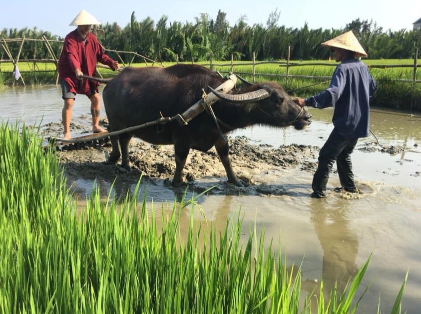Khách Tây trải nghiệm cày ruộng ở Hội An