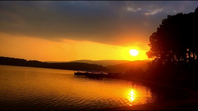 Hồ nằm cách trung tâm khoảng 7 – 8 km. Hồ lớn được bao quanh rừng thông và đồi núi, tạo nên không gian hoàng hôn cực kỳ thanh bình và rộng mở.