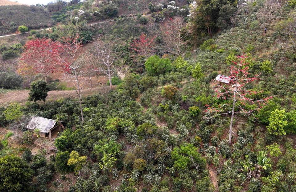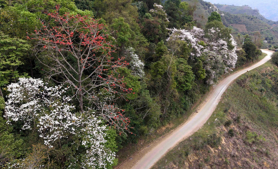 Sắc đỏ của hoa gạo và màu trắng của hoa ban, loài hoa đặc trưng của núi rừng, hòa quyện tạo nên bức tranh thiên nhiên vừa rực rỡ, vừa mềm mại, khiến cung đèo Pha Đin càng trở nên thơ mộng, quyến rũ.