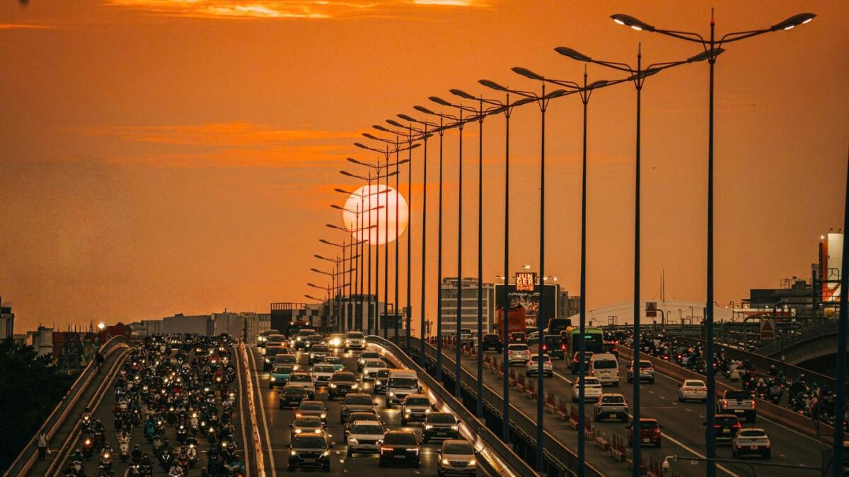 Cuối mùa khô đầu mùa mưa ở Sài Gòn, trong không khí có nhiều bụi và hơi nước. Bụi mịn, khói, hơi nước tích tụ làm ánh sáng bị tán xạ nhiều hơn. Điều này làm màu trời đậm hơn với sắc cam, đỏ, tím, trong khi đó ánh sáng lại mềm mại và có chiều sâu.