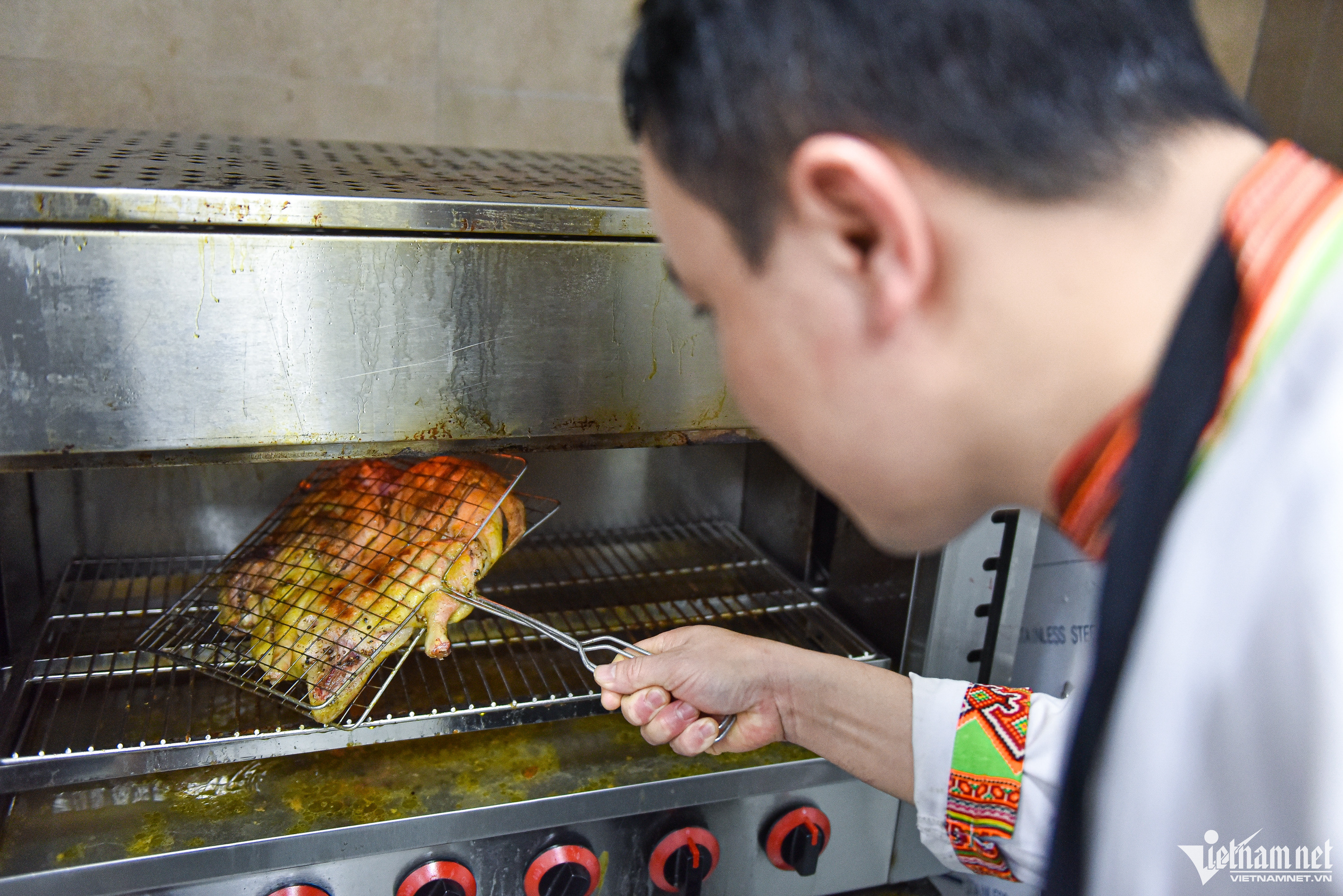Tại các khu nghỉ, nhà hàng, vịt thường được nướng bằng lò hoặc than hoa. Nếu du khách ở tại homestay, có thể cùng người dân trải nghiệm nướng vịt trên bếp củi. Khi nướng, lớp mỡ vịt bắt đầu chảy xuống làm than củi thêm đỏ rực, mùi hương tỏa ra thơm phức. Khi chín, thịt vịt chuyển sang màu nâu đỏ cực bắt mắt.